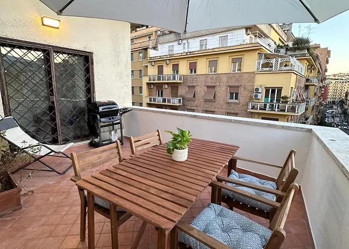 The 1-room L'Attichetto Di Via Padova Apartment Rome is located in the Unterrath district of Rome, approximately 5 minutes by foot from Museo Parigino. This apartment is fitted with a terrace which boasts views of city.